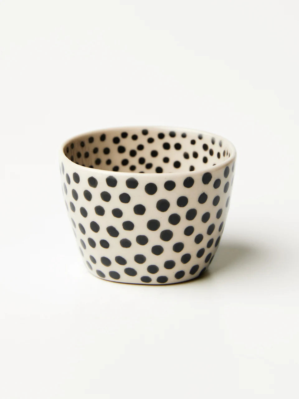 Small but perfectly formed and functional, the Chino Salt Bowl in Black Sprinkle makes a welcome additon to your dining table. Use for salt and pepper or any single serve condiment or sauce.Handmade from eathenware clay, each spot is painted by hand. Yes, by hand! Designed in Sydney and handmade in Vietnam by Jones & Co artisans.