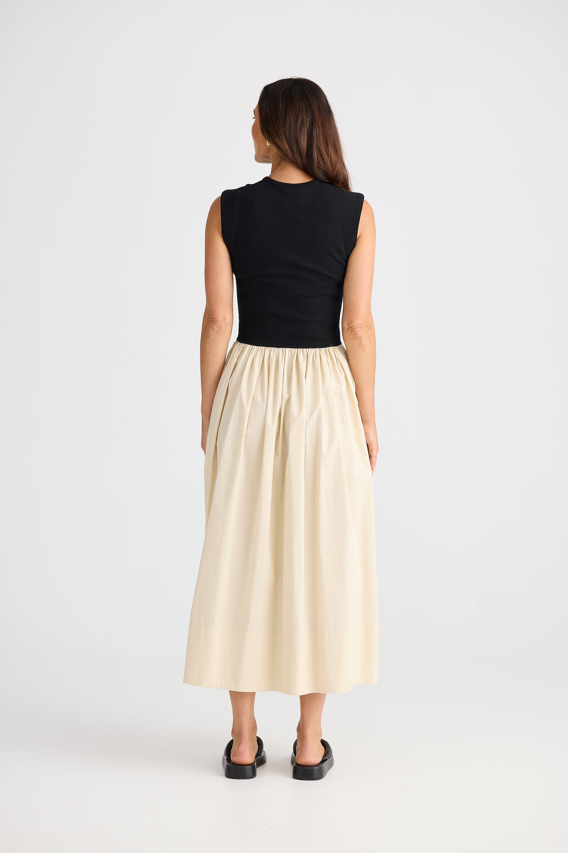 Jersey rib body and crepe skirt